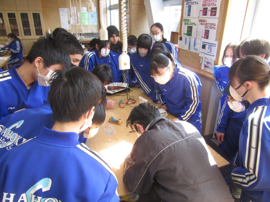 2年生の技術では、LEDライトを製作しています。今日から半田付けがスタートしました。慣れない半田付けに苦戦しながら、LEDを付けていました。